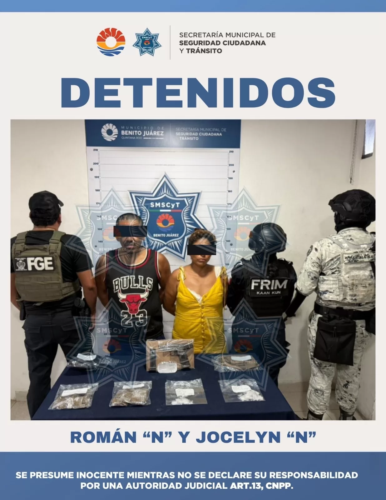 Por lo anterior, Román “N” y Jocelyn “N”, fueron detenidos y puesto a disposición de la FGE para los fines legales conducentes.