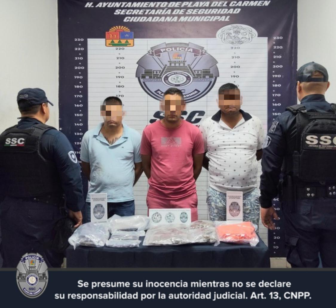 Playa del Carmen, 11 de agosto (InZoom.mx).— Un patrullaje preventivo en la colonia Misión Las Flores derivó en la detención de tres hombres por presuntos delitos contra la salud, informó la Secretaría de Seguridad Ciudadana de Playa del Carmen.