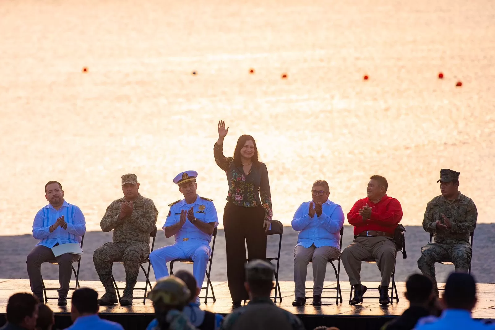 Al evento asistieron la diputada Lilia Inés Mis Martínez, en representación del Congreso del Estado; el Teniente de Infantería Julio César Cruz, por parte de la Secretaría de la Defensa Nacional; el Primer Maestre Pedro Damián Cruz, por la Secretaría de Marina Armada de México; José Enrique Gómez Burgos, presidente de la Sociedad Cooperativa Pesquera Xaman Ha; y el Capitán de Puerto, Daniel Antonio Maas Michel, regidoras, regidores e invitados.