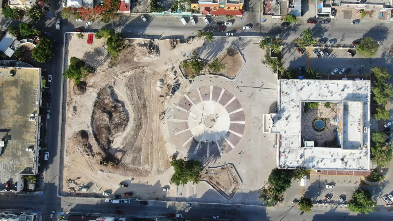 Playa del Carmen, Solidaridad, 10 de julio del 2023.- La presidenta Lili Campos, síndico y regidores recorrieron la Plaza 28 de Julio para observar los avances que ya tiene la obra de renovación; se constató que se encuentra a un 55 por ciento y los titulares de la Secretaría de Infraestructura y Obras Públicas determinaron que sí es viable tenerla lista para el 30 aniversario del municipio.