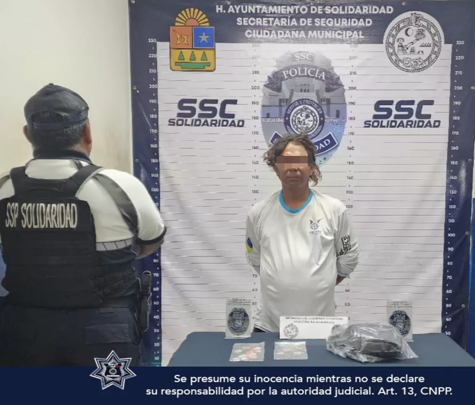 Playa del Carmen, 13 de julio (Infoqroo).- Durante el operativo de vigilancia para fortalecer la seguridad en la zona turística, la Policía Municipal de Solidaridad, aseguró a una persona en posesión de posibles narcóticos en la colonia Centro.