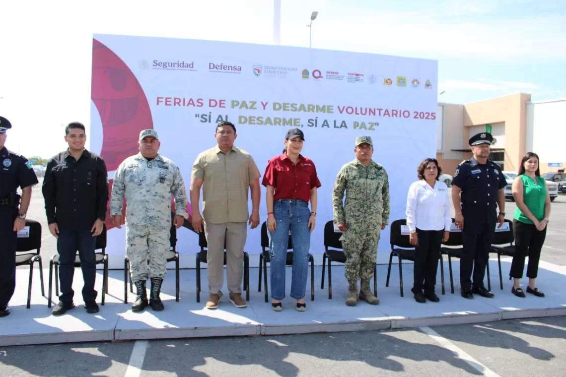 Playa del Carmen.- Con el objetivo de evitar la portación de armas de fuego, municiones y explosivos y fortalecer la cultura de paz, el Secretariado Ejecutivo del Sistema Estatal de Seguridad Ciudadana (SESESC) en coordinación con la Secretaría de la Defensa Nacional (SEDENA) y el Ayuntamiento de Playa del Carmen, pusieron en marcha las Ferias de Paz y Desarme Voluntario 2025 “Sí al Desarme, Sí a la Paz” en la cabecera municipal.