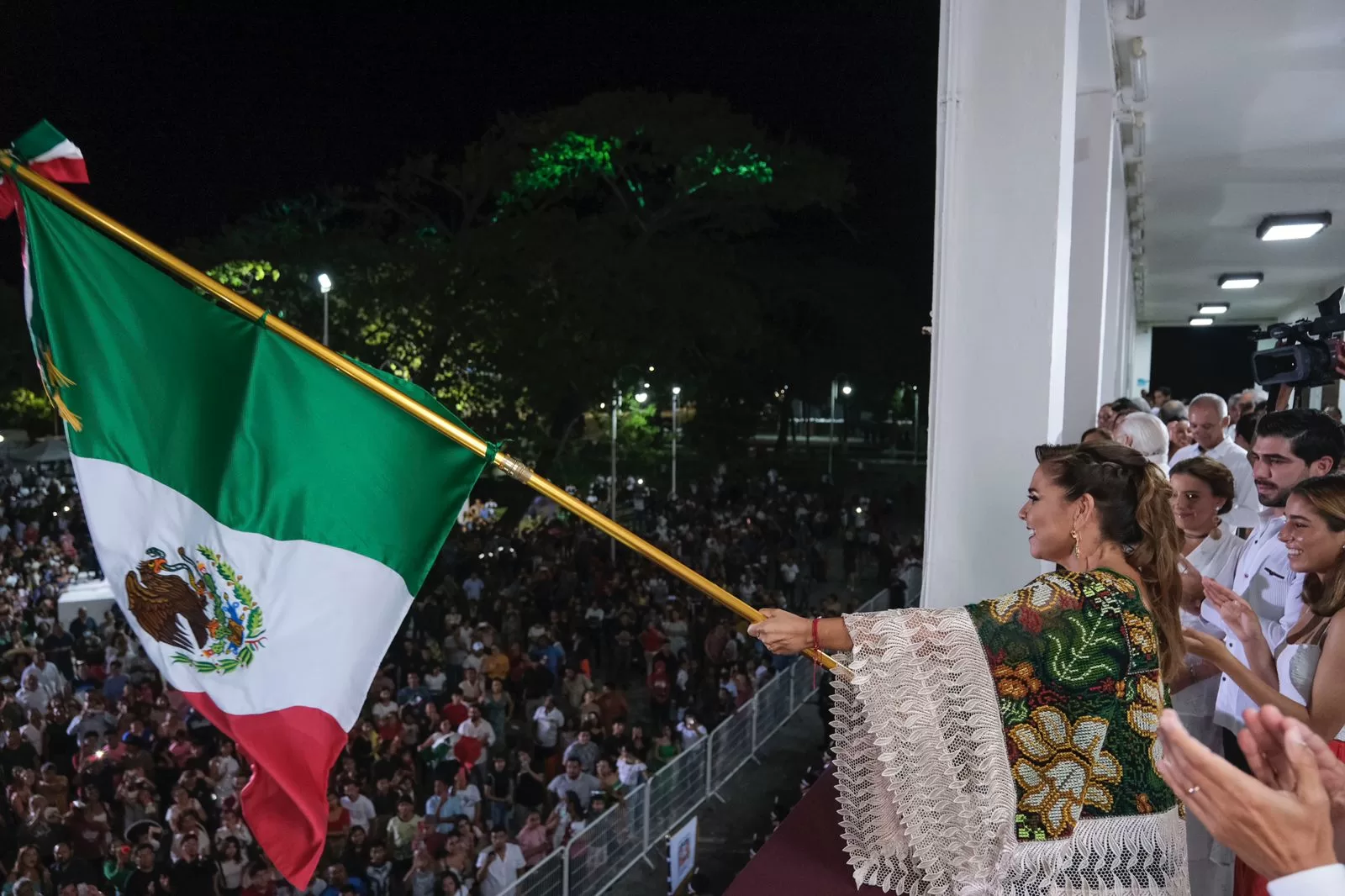 CHETUMAL, 16 de septiembre.— La gobernadora Mara Lezama Espinosa celebró con el pueblo una noche mexicana, conviviendo con miles de familias que disfrutaron de una verbena popular en la explanada de la Bandera para luego dar el tradicional Grito de Independencia desde el balcón central de Palacio de Gobierno.