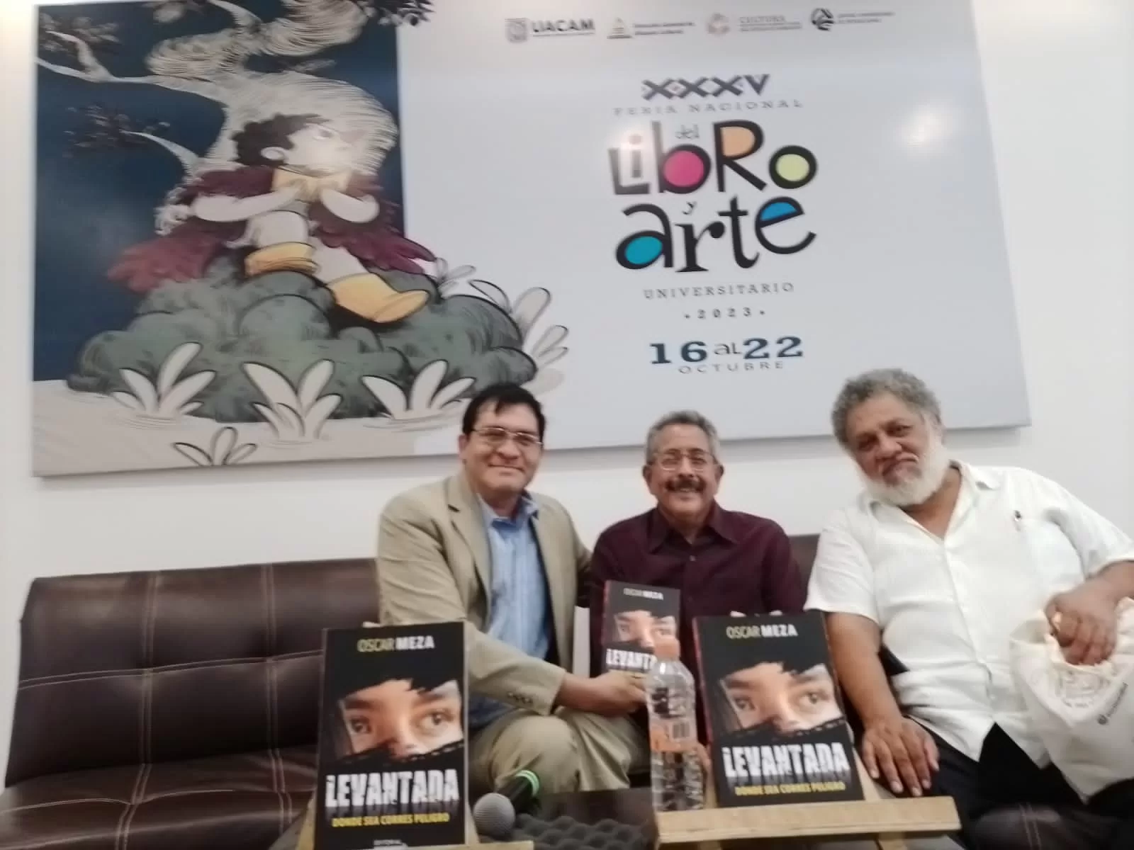 CAMPECHE, 20 de octubre (Juvencio Martínez).— En el marco de la Feria Nacional del Libro y Arte Universitario que organiza la Universidad Autónoma de Campeche, el periodista veracruzano Oscar Meza presentó su ópera prima Levantada, donde sea corres peligro.