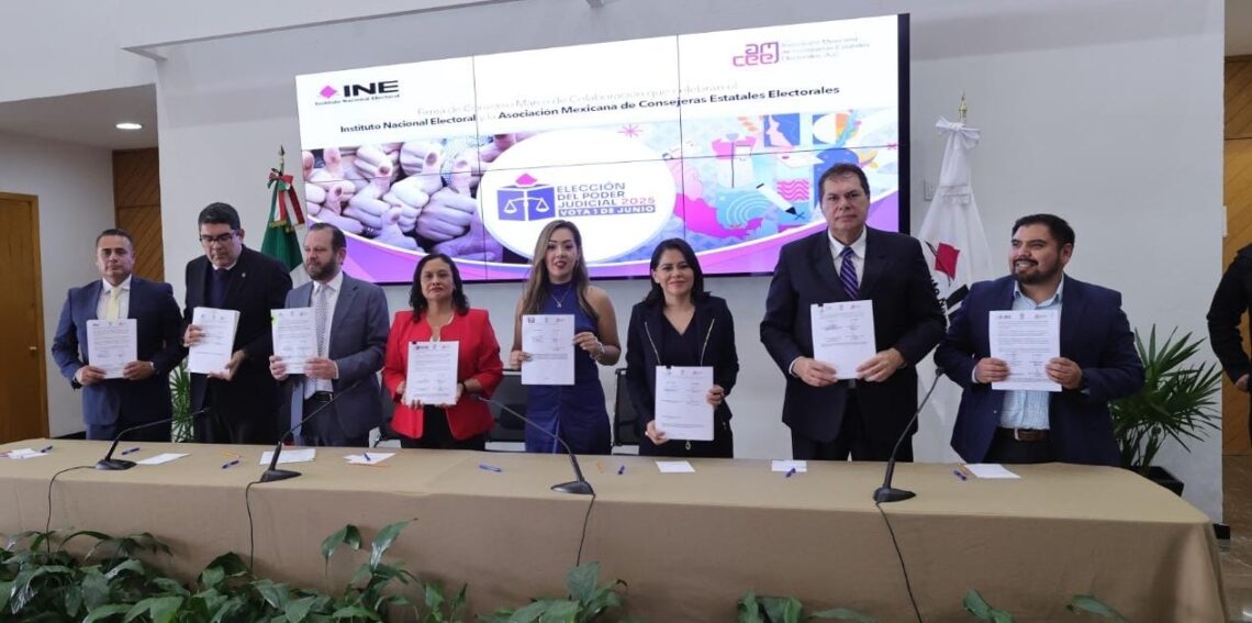 Ciudad de México; a 31 de enero. – La Consejera Presidenta del IEQROO, Rubí Pacheco Pérez atestiguó el acto protocolario de la Firma de Convenio de Colaboración que celebró el Instituto Nacional Electoral y la Asociación Mexicana de Consejeras Estatales Electorales A.C. (AMCEE) para acompañar los trabajos de la Red de Juzgadoras: Candidatas y Electas, a través de ésta, se desarrollaran acciones de prevención, atención, seguimiento y sistematización de los casos de violencia política contra las mujeres en razón de género.