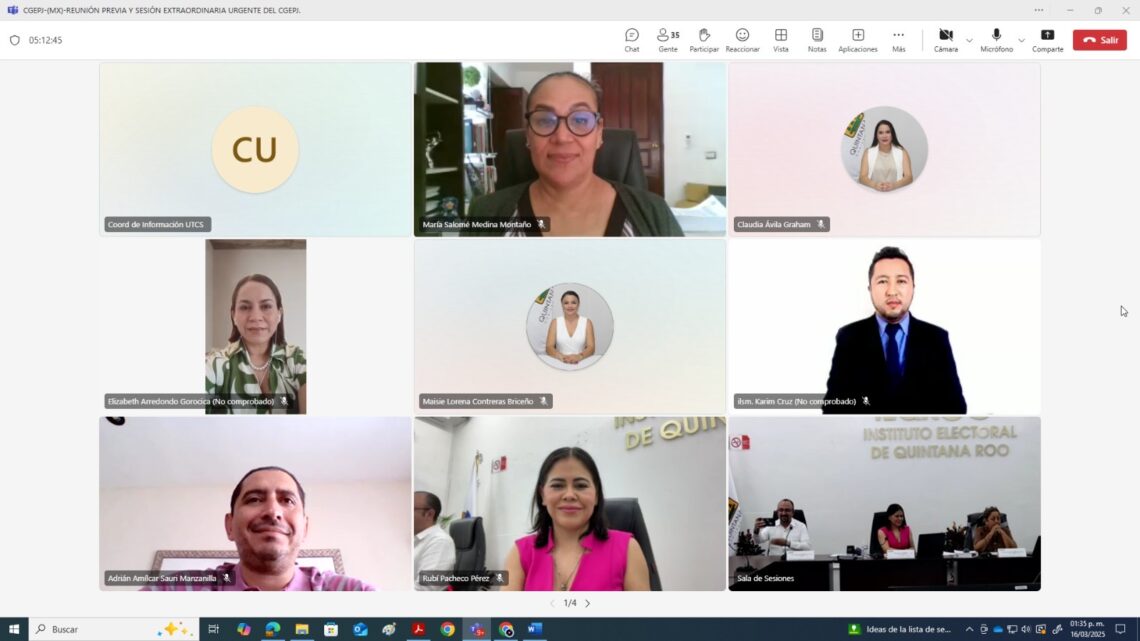 Estuvieron presentes de manera virtual, el Presidente de la Comisión de Organización, Informática y Estadística Juan César Hernández Cruz, las consejerías electorales: Elizabeth Arredondo Gorocica; Claudia Ávila Graham; Maisie Lorena Contreras Briceño; María Salomé Medina Montaño; Adrián Amilcar Sauri Manzanilla, la Secretaria Ejecutiva Guadalupe Esquivel Monroy, así como el Director de Organización Mario José Balam Santos e integrantes de la Junta General.