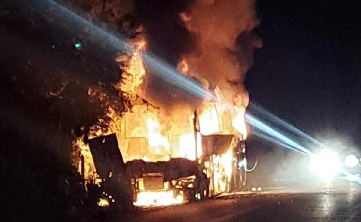Momentos después se reportó el incendio de un autobús, a la altura de la ranchería Cacahuatillo.