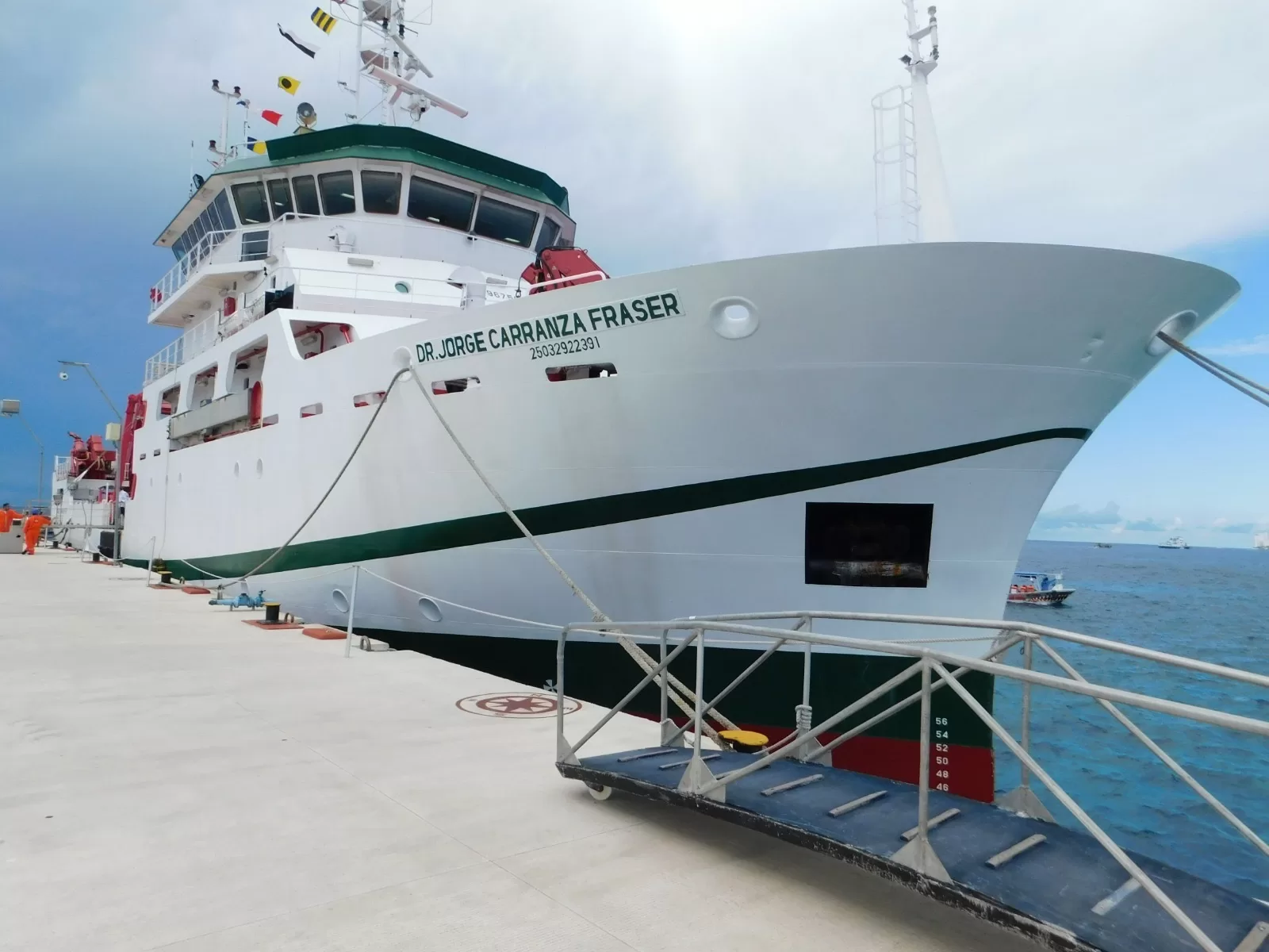 El acto tuvo lugar en el Muelle Punta Langosta, en Cozumel, como cierre del reciente crucero de investigación realizado en el Mar Caribe por el buque Dr. Jorge Carranza Fraser, considerado el más avanzado de México en su tipo.