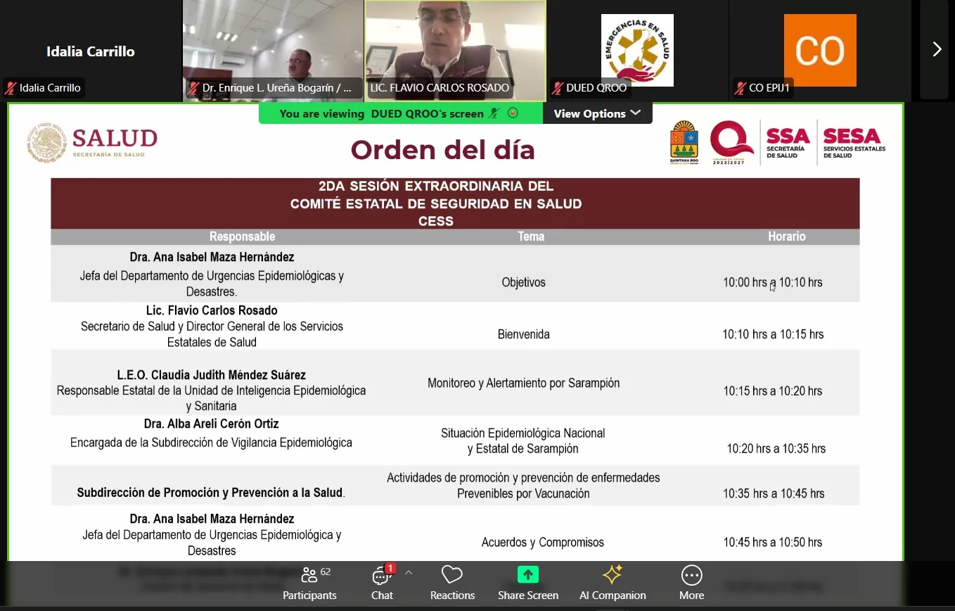Durante las sesiones, se presentó un análisis detallado sobre la situación actual del sarampión en México y en el estado, reafirmando el compromiso de actuar de forma rápida y eficiente ante posibles riesgos a la salud pública.