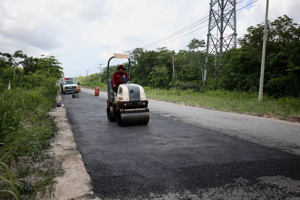 Rehabilitan carpeta asfáltica en la carretera de entrada y salida Cancún-Valladolid