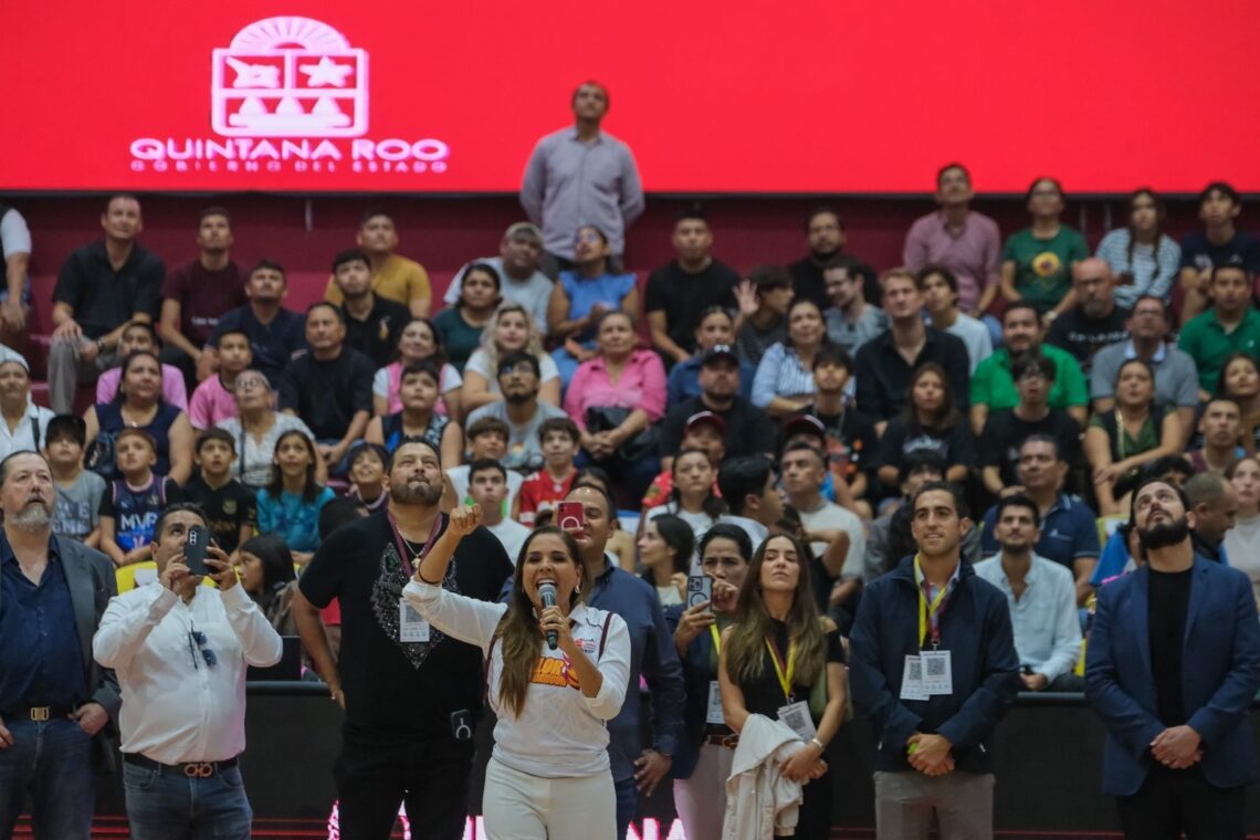 “Cancún se merece tener un poliforum como este, de primer nivel, que es hoy el mejor estadio de todo el país” expresó la Gobernadora antes de dar el saque inicial del partido.
