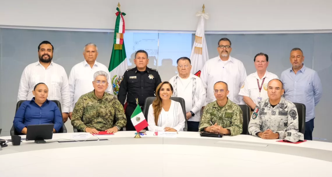 Cancún.- La Coordinación Estatal para la Construcción de Paz y Seguridad en Quintana Roo, encabezada por la gobernadora Mara Lezama Espinosa, se reunió hoy en el Complejo de Seguridad C5 de Cancún.