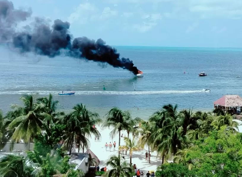 Cancún, 1 de julio (Infoqroo). Una embarcación se incendió frente a la costa de playa Langostas, en la zona hotelera de Cancún.