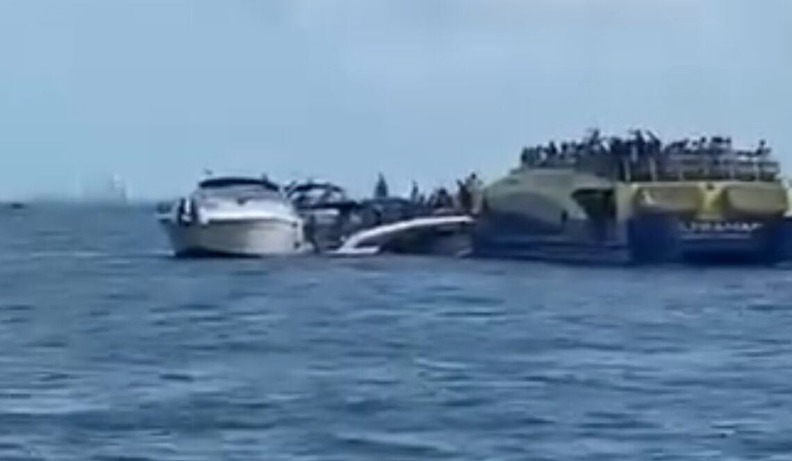 Según testigos, el yate intentó ganarle el paso al ferry y terminó impactándose, lo que provocó el accidente.