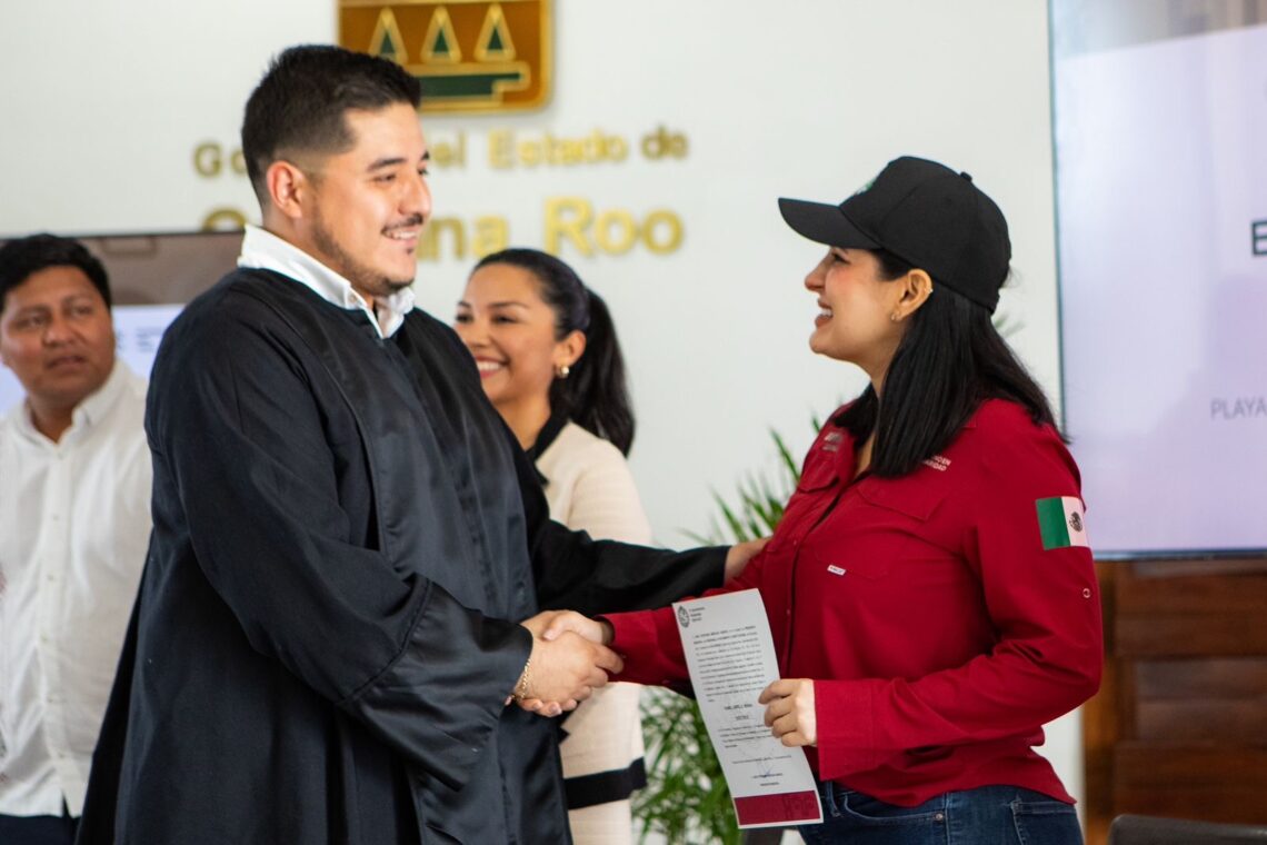 Playa del Carmen, Quintana Roo, 17 de diciembre de 2024.— La Justicia Cívica es la herramienta clave para prevenir conflictos, fortalecer el tejido social y construir un Solidaridad más justo y ordenado, dijo la presidenta municipal Estefanía Mercado, en la entrega de siete nombramientos a juezas y jueces cívicos, en el salón “Leona Vicario”, en el nuevo Palacio Municipal.