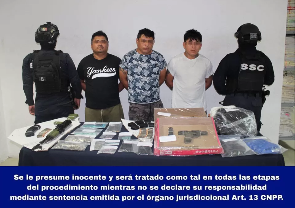 Tulum, 20 de noviembre (Infoqroo).- La Secretaría de Seguridad Ciudadana (SSC) informó sobre la detención de tres sujetos, presuntos implicados en delitos contra la salud y violación a la Ley Federal de Armas y Explosivos.