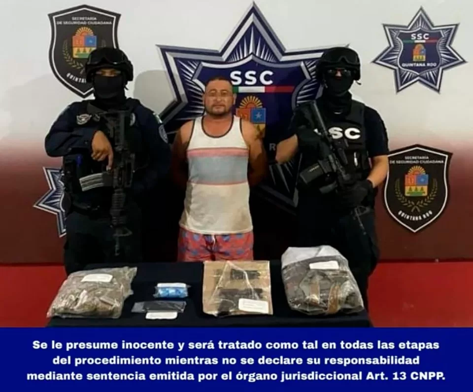 Cancún, 4 de enero (Infoqroo).- Elementos de la Secretaría de Seguridad Ciudadana detuvieron a José “N”, presunto implicado en Delitos Contra la Salud y Violación a la Ley Federal de Armas de Fuego y Explosivos.