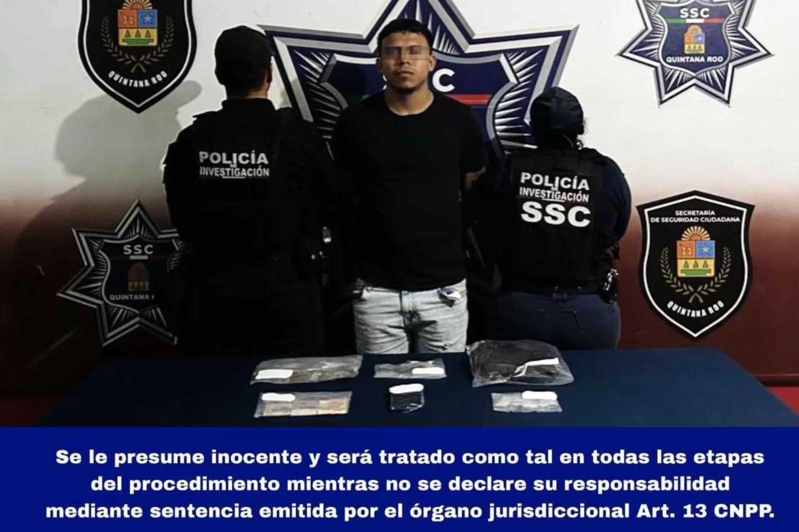 Tras ser abordado en las avenidas Sol entre la Arrecifes y calle Playa Lancheros, del fraccionamiento Paraíso Maya, supermanzana 107, se le decomisaron: una mariconera, 25 bolsitas con marihuana, 13 bolsitas con cristal, 140 pesos, un teléfono celular y el vehículo Dodge, tipo I10, color negro, año 2012, con placas de Quintana Roo. El individuo y lo asegurado fueron puestos a disposición de la Fiscalía Especializada en Combate al Delito de Narcomenudeo.