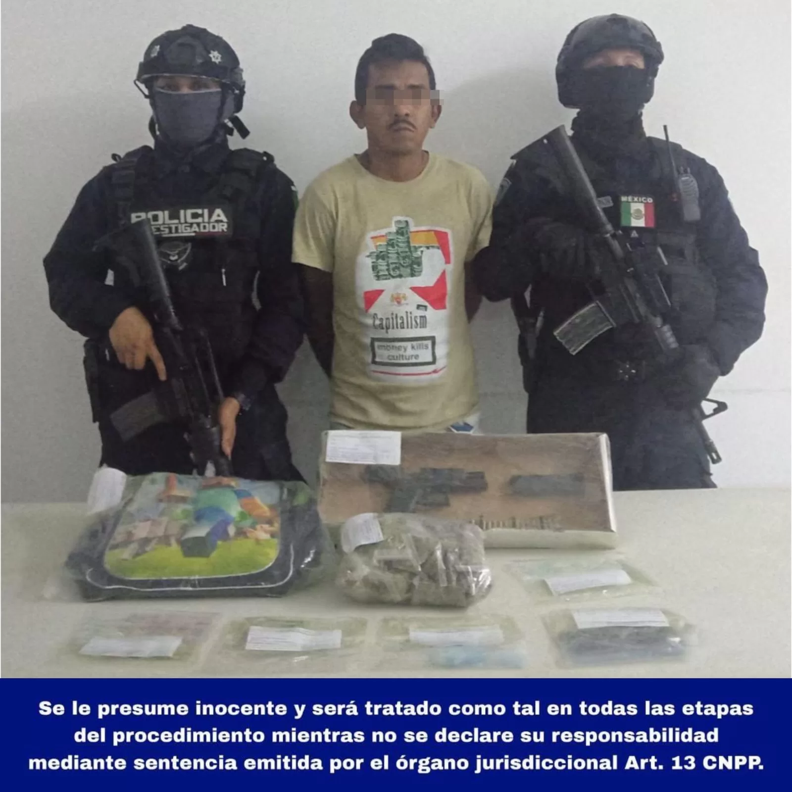 Tulum, 8 de marzo (Infoqroo).- La Secretaría de Seguridad Ciudadana detuvo a Alan “N” como presunto implicado en delitos contra la salud y de violación a la Ley de Armas y Explosivos.