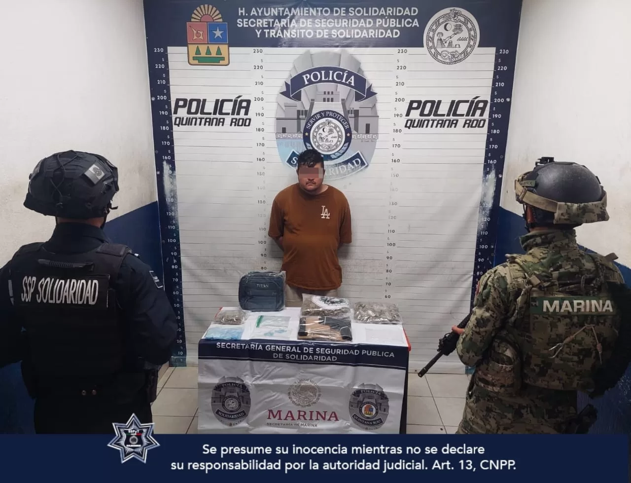 En otro punto de la ciudad, sobre la cerrada Varadero con avenida Playa Azul, fue detenido Brian “N” de 20 años, originario de Chetumal, quien fue visto por los policías introduciendo varias bolsitas con drogas a una mochila. Luego de una inspección se le decomisaron 40 envoltorios con posibles narcóticos a determinar, dos con marihuana y un chaleco balístico.