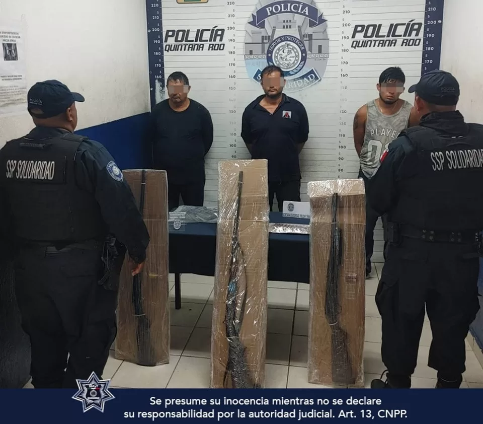 Por lo anterior, los policías implementaron un operativo conjunto con elementos de la Secretaría de la Defensa Nacional, logrando ubicar a Eric “N” de 27 años de edad, originario de Tlaxcala, Wilbert “N” de 43 años, procedente de Yucatán y Gerardo “N” de 57 años, originario de la Ciudad de México, a quienes se les aseguraron tres escopetas y 14 cartuchos útiles.