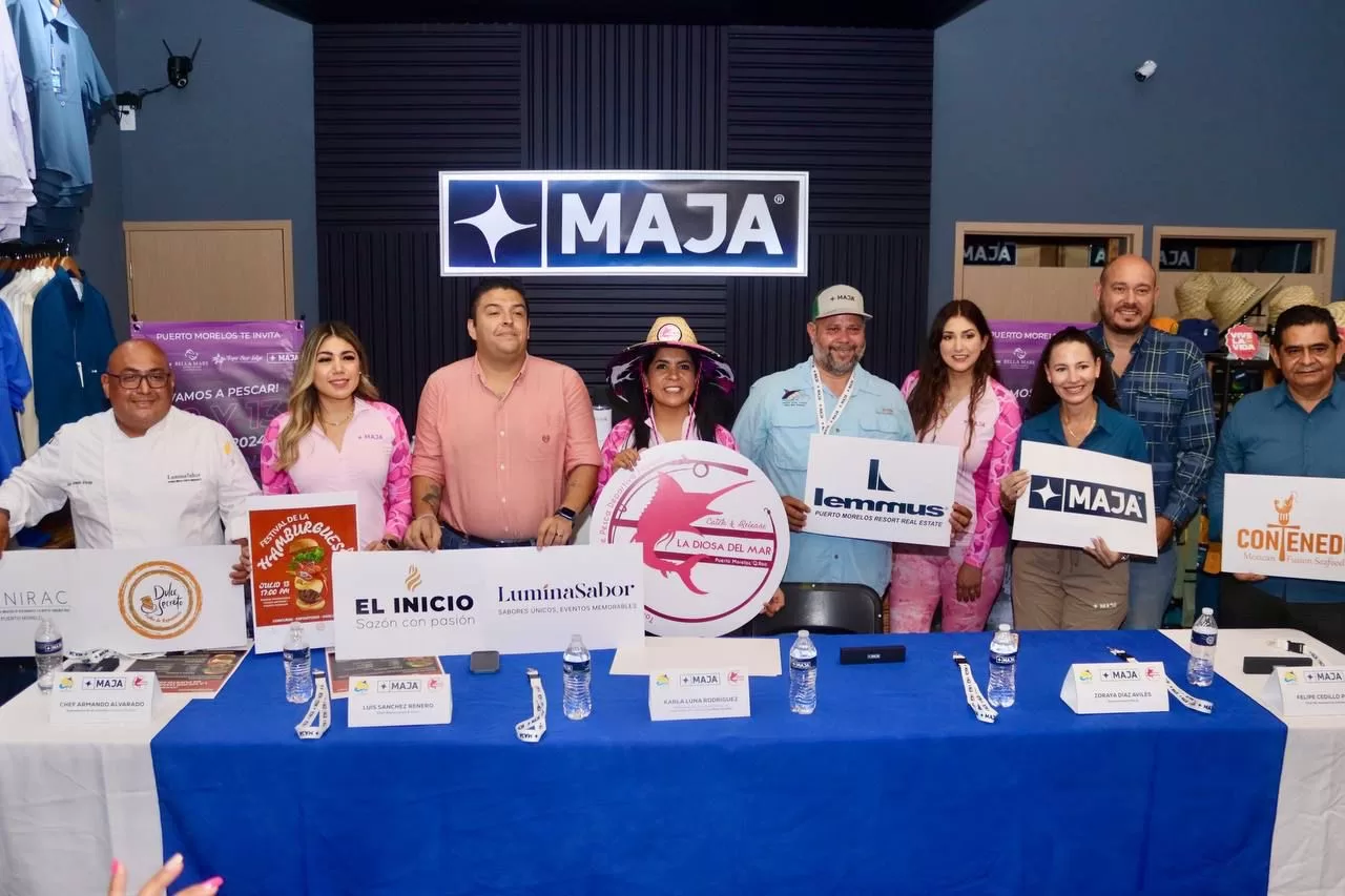 Karla Luna, presidenta del Comité Organizador, destacó que este evento cuenta con el apoyo invaluable de la Gobernadora Mara Lezama y de la Presidenta Municipal de Puerto Morelos Blanca Merari Tziu, quienes son las principales promotoras de este evento inclusivo que promueve el empoderamiento de la mujer y fomenta la conservación de las especies, además que genera impulso turístico al Estado; asimismo, tiene el respaldo de diversos patrocinadores entre los que destacan Lemmus Puerto Morelos Resort Real Estate, Maja Cancún, Canirac Puerto Morelos, Restaurante El contenedor, Pelicanos Restaurante & Marina, El Cid Hotel & Marina, entre otros, quienes hacen posible la realización de esta competencia, y apuntó: “Este año se suma a esta gran familia de la Diosa del Mar, la marca MAJA CANCUN, que participará de las actividades del torneo con la exposición de sus mejores prendas para las y los pescadores deportivos en la sede del evento y además se constituirán en punto de registro para los equipos quienes podrán acudir a la tienda ubicada en Plaza Malecón Las Américas para llevar a cabo su inscripción.”