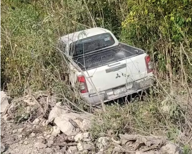 El número de emergencias 9-1-1 recibió el reporte de una camioneta fuera de la cinta asfáltica siendo las 11:00 horas aproximadamente, por lo que acudieron a verificar los cuerpos de auxilio. Al llegar, en el kilómetro 217, corroboraron que una camioneta pick up de la marca Mitsubishi color blanco con placas de circulación PEE-19-33 que era conducida por trabajadores del Tren Maya se encontraba internada a unos metros en el monte.