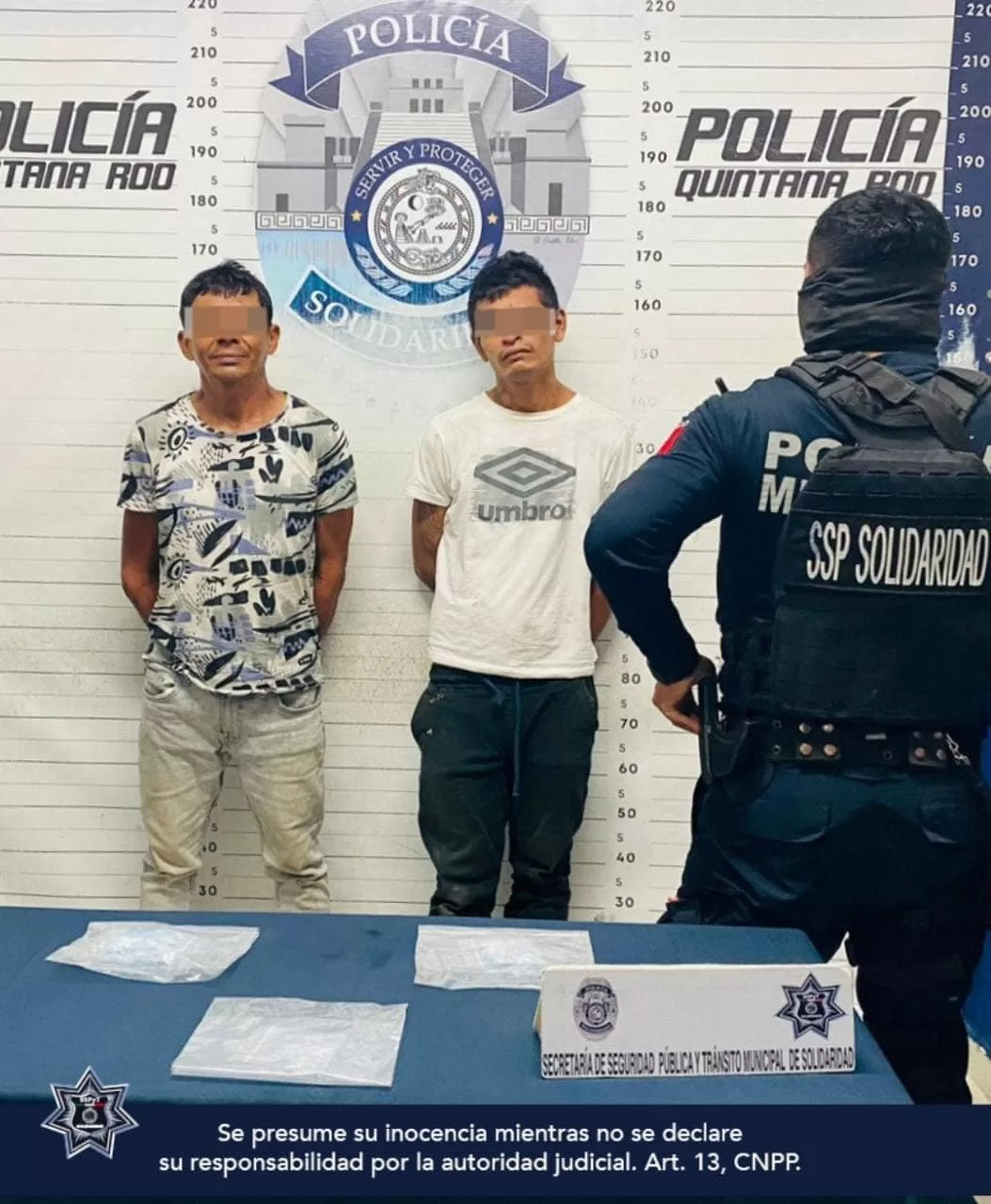 En otro operativo, Jonathan “N”, de 24 años de edad, originario de Quintana Roo, y José “N” de 49 años, de Tabasco, fueron asegurados en posesión de 108 envoltorios con la droga conocida como piedra, en la calle 70 entre avenidas 40 y 45 de la colonia Colosio, tras ser sorprendidos cuándo se intercambiaban los envoltorios.