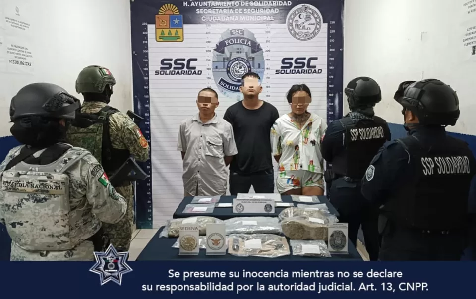 Playa del Carmen, 23 de agosto (Infoqroo).- En una rápida acción de respuesta inmediata, la Policía Municipal de Solidaridad realizó la detención de tres sujetos y el aseguramiento de un arma de fuego, cartuchos útiles y 30 posibles dosis de narcóticos durante el operativo de vigilancia permanente en el fraccionamiento Las Palmas.