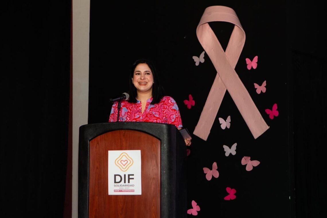 “Sabemos que el cáncer de mama es un desafío que afecta profundamente a nuestras madres, hermanas, hijas y amigas, pero también sabemos que con detección temprana podemos salvar vidas”, señaló Estefanía Mercado, quien estuvo acompañada por el encargado de despacho de la presidencia honoraria y del director general del DIF de Solidaridad, Eduardo Asencio y Jesús Rodríguez, respectivamente.