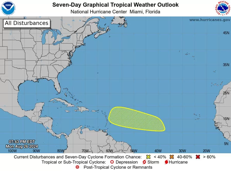 Cancún, 27 de agosto (Infoqroo).- La Coordinación Estatal de Protección Civil indicó esta mañana que, con base en la información emitida por el Centro Nacional de Huracanes de Miami, se espera la formación de una zona de baja presión en el Atlántico central, la cual mantiene 20% de probabilidad de desarrollo ciclónico en 7 días. El fenómeno se mantiene bajo vigilancia.