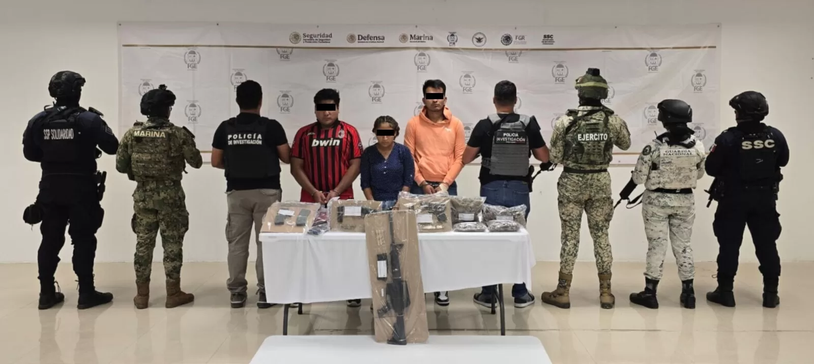 En la primera audiencia fueron imputados Marco Antonio “N”, Jorge Ezequiel “N” y Guadalupe “N”, quienes fueron detenidos en coordinación con elementos del Grupo Interinstitucional en avenida Los Gansos entre avenida Azulejos y calle Semilleros; los vincularon por presunto narcomenudeo en la variante de posesión del estupefaciente cannabis sativa I.