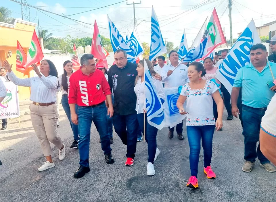 Cancún,16 de mayo (Infoqroo).– El candidato a la Presidencia Municipal de Benito Juárez por la coalición “Fuerza y Corazón por Quintana Roo”, Jorge Rodríguez Méndez, acompañó este día al dirigente nacional del PRI, Alejandro Moreno, quien emprendió una gira de trabajo por Cozumel y Playa del Carmen.