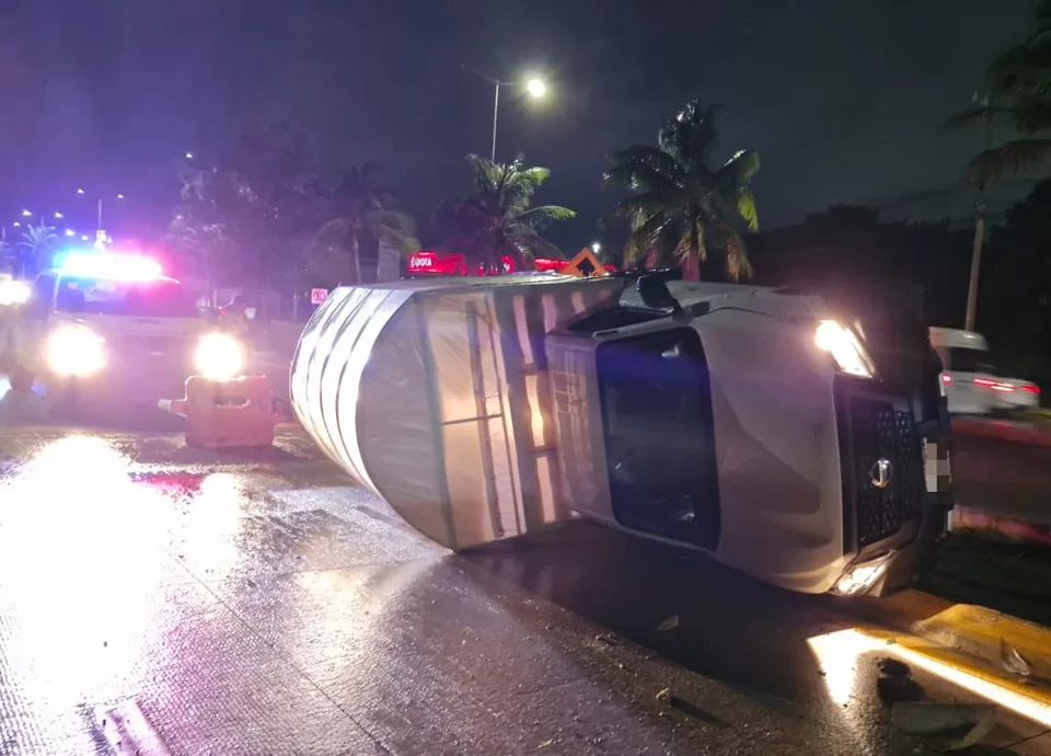 Cancún, 16 de diciembre (InZoom.mx).- Una camioneta Nissan NP300 volcó esta mañana en el bulevar Luis Donaldo Colosio, sin que oficialmente se reportaran lesionados.