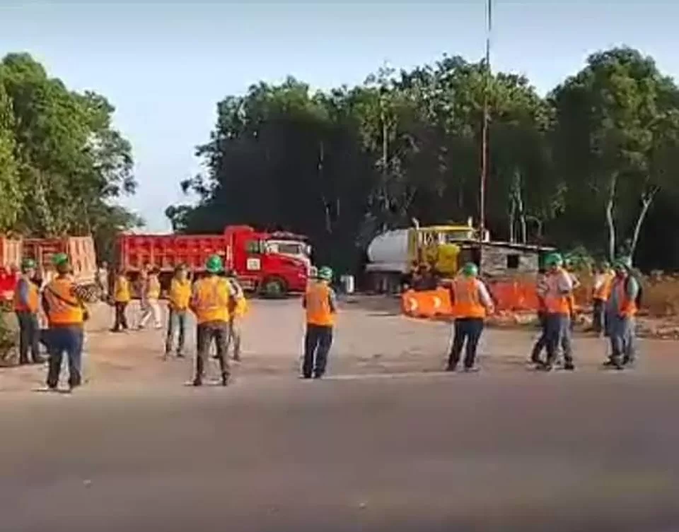 Ayer lunes, un grupo de aproximadamente 25 volqueteros de Campeche bloquearon el acceso a las obras en Buenavista para impedir el cruce del personal, encargados y vehículos, porque los encargados de las obras les hacían descuentos en sus percepciones.