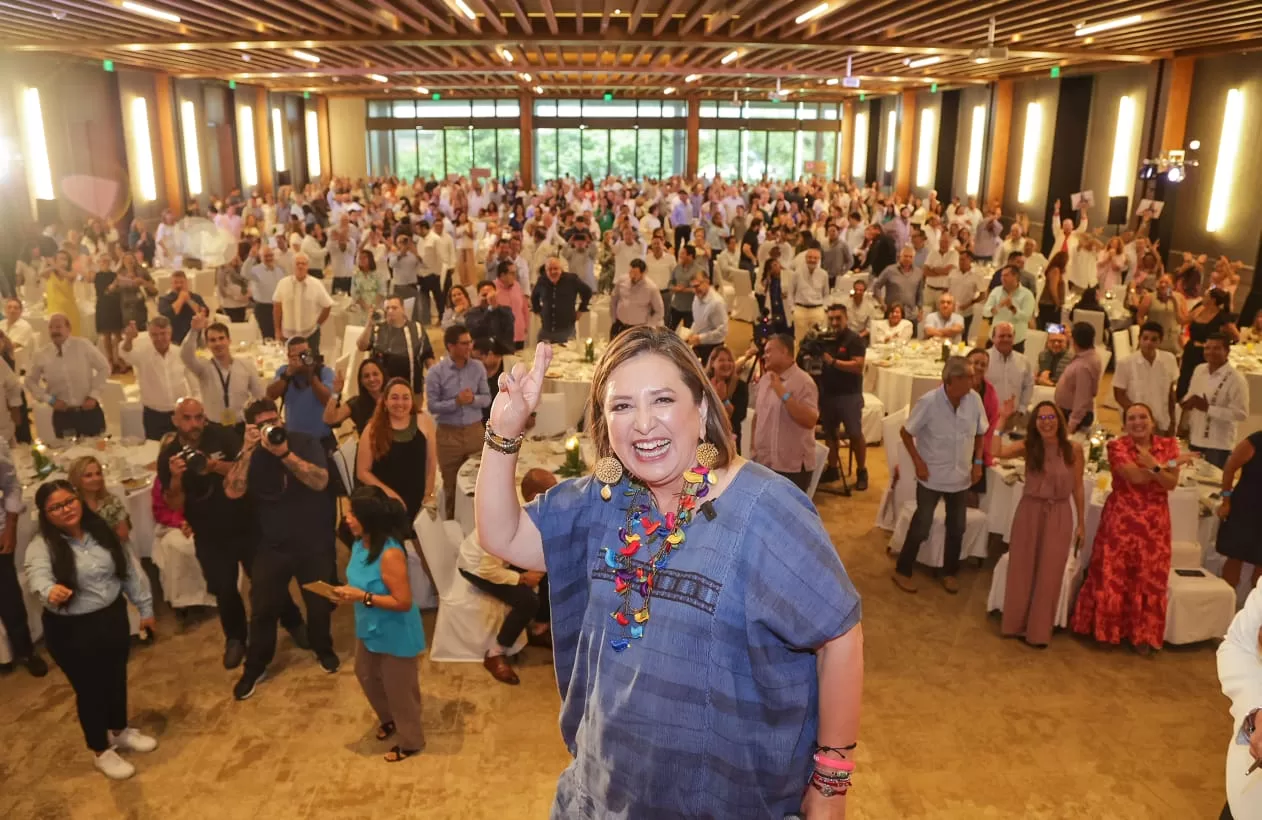 CANCÚN, 21 de agosto.— Xóchitl Gálvez, aspirante a la presidencia de la República por la coalición “Frente Amplio por México” (PAN-PRI-PRD), expresó fuertes críticas hacia los acuerdos políticos del Presidente Andrés Manuel López Obrador con ex gobernadores corruptos. Ella considera que estas alianzas demuestran que el Presidente está protegiendo a quienes hacen tratos con él.
