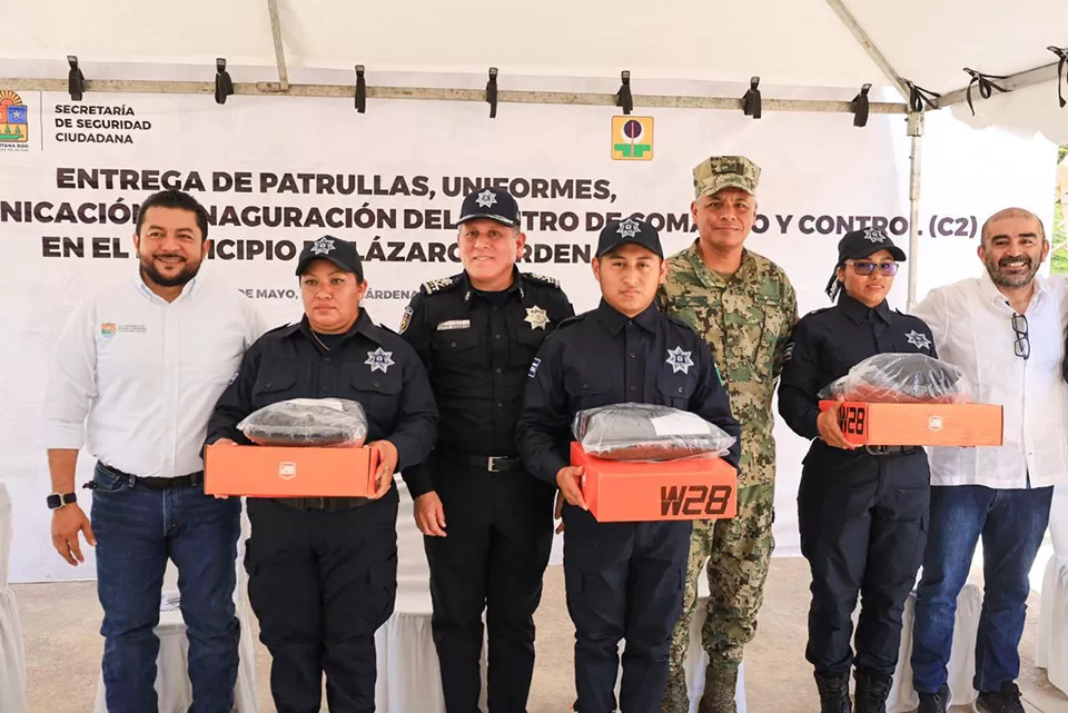 Además, se entregaron 132 uniformes, tres patrullas, 60 equipos de radiocomunicación, siete radios base, siete antenas, con las que se tendrá comunicación con los destacamentos de la Policía Municipal que se encuentran en las diferentes comunidades del municipio, como Holbox, Chiquilá, Solferino, Valladolid Nuevo, Ignacio Zaragoza y Nuevo Xcan.